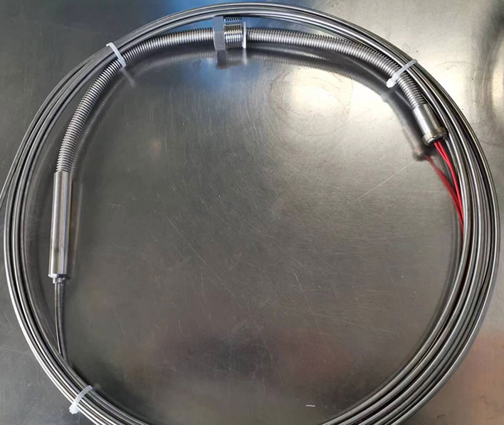 鎧裝礦物絕緣加熱電纜MI它是由電熱合金絲(發(fā)熱體)無(wú)機(jī)礦物絕緣物和外鞘金屬套管經(jīng)過(guò)多次拉伸形成致密度很高的堅(jiān)實(shí)體。可以滿足高溫條件和大發(fā)熱功率(達(dá)100W/m)的需要, 高承受溫度可達(dá)600℃;導(dǎo)體電阻值的范圍從4Ω/km到25000Ω/km,具有優(yōu)良的機(jī)械強(qiáng)度、耐腐蝕。主要應(yīng)用于核工業(yè)、建筑業(yè)、金屬制造業(yè)、罐桶、容器加熱、高溫工業(yè)管道伴熱、工藝介質(zhì)防凝降粘、各類工業(yè)電加熱器等領(lǐng)域。